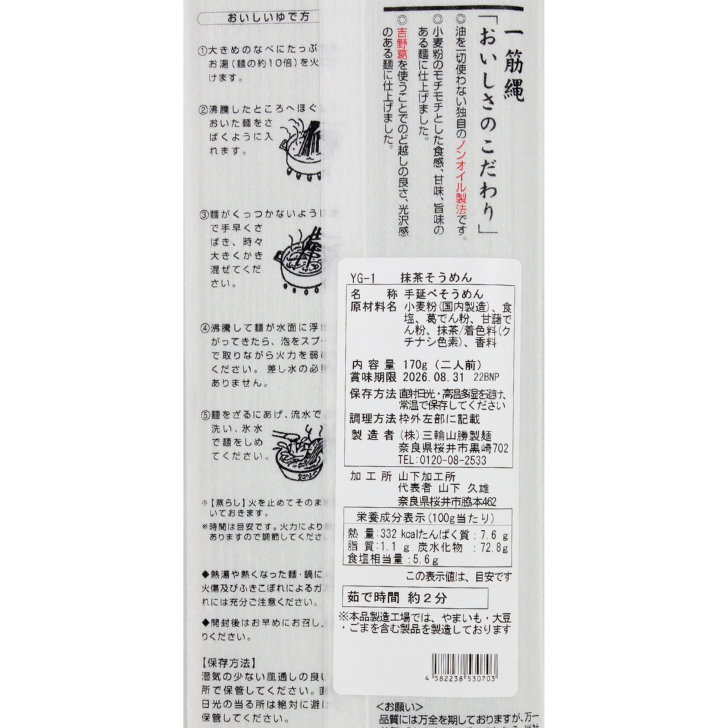 なんと茹で時間2分!光沢感があり、見事な抹茶色!吉野葛入り・ノンオイル!