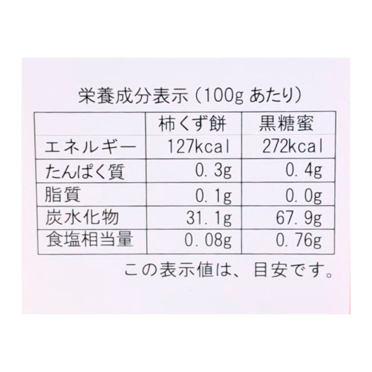 内容量:柿くず餅130g×2、黒糖蜜20g×2