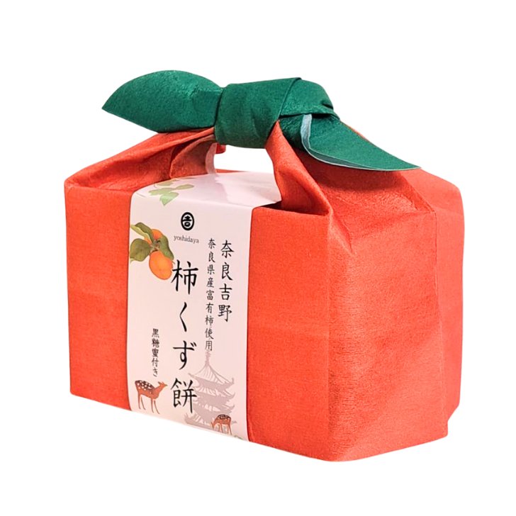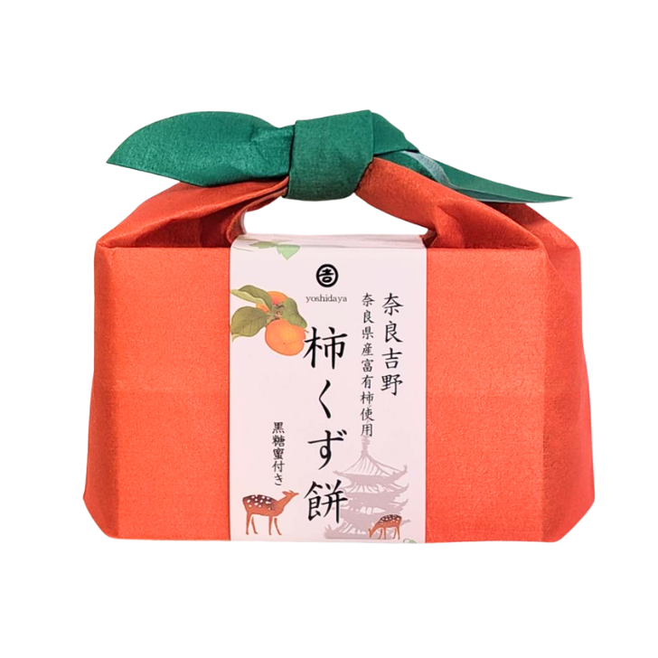 奈良県西吉野産の富有柿をたっぷりと練り込んだ柿の風味がふわ~っと広がるぷりぷり食感のくず餅です。風呂敷タイプのパッケージも可愛い♡プレゼントにもぴったりです!