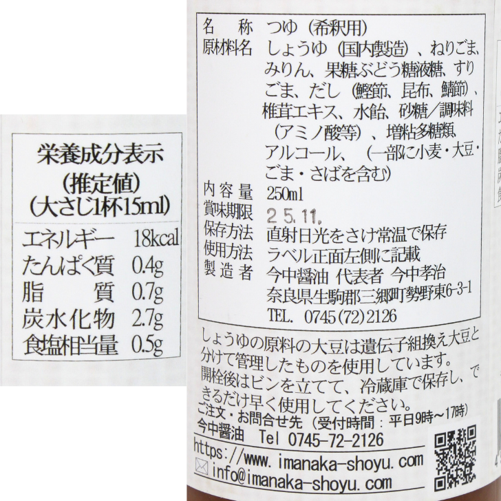 香り高いすりごま、コクのある白ねりごまと天然だしをたっぷり使った香り豊かなめんつゆです。そうめんや冷やし麺、冷奴やサラダ、冷しゃぶ等幅広く使えて重宝しますよ!