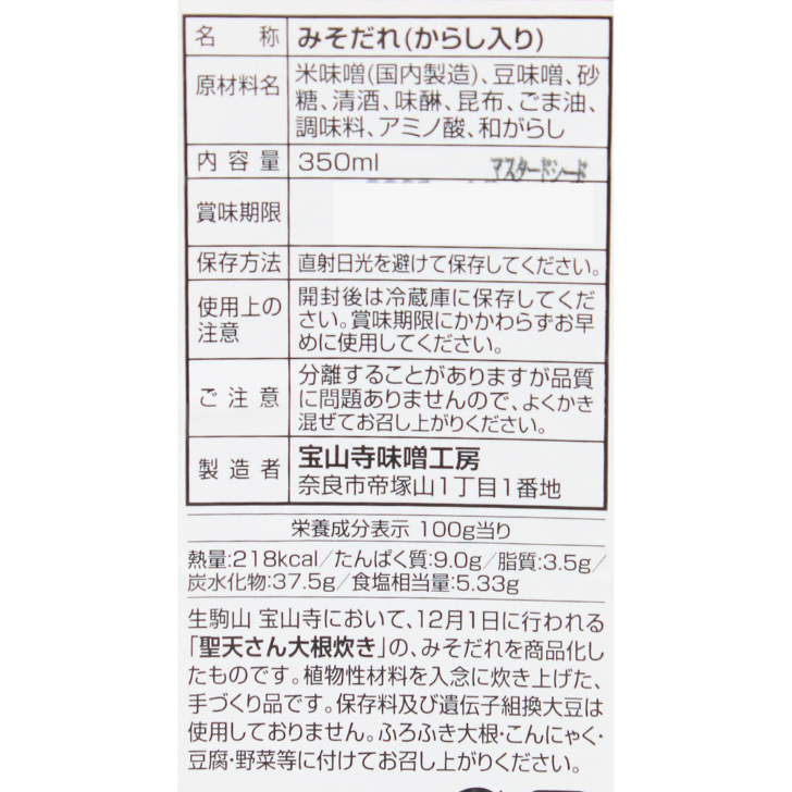 大人気宝山寺味噌に和ガラシ味が登場!和ガラシのピリッとしたアクセントがたまらない!大人の味に仕上げたいときには是非このカラシ味をお試し下さい!